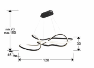 Lámpara grande, realizada en acero y aluminio, acabado negro mate. Difusor de silicona. Regulable en altura. Iluminación LED 85W, CCT: 2700-5000 K. 5,100 lm. DIMABLE. Incluye mando a distancia.       Este producto utiliza driver led con dimado de tipo 0-10V, un dimer y un mando a distancia por radiofrecuencia.