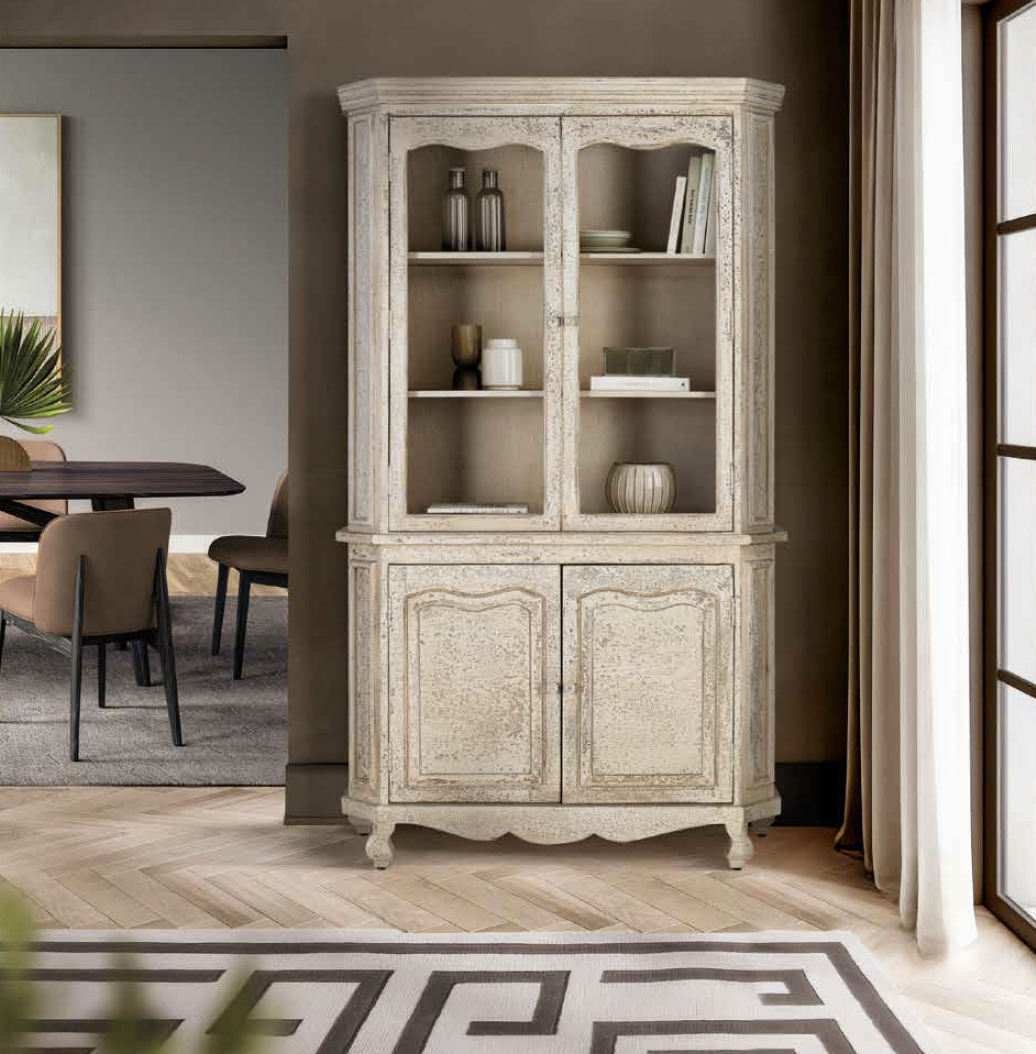 Vitrina de madera de mango, acabado envejecido. 207 x 120 x 40 cm